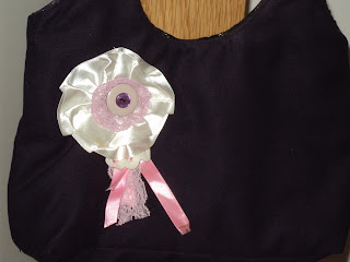 Descrição: Mala roxo escuro de tecido forte, com aplicação de flor, e com aplicação nas alças, com interior de tecido alcochoado e com bolso interior, com mola para fechar, feita artesanalmente, é única.